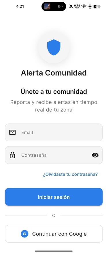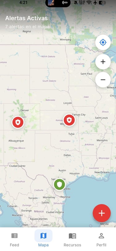 una vez dentro de la aplicacion ,veras el mapa principal con las alertas activas de tu comunidad
